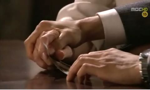 写真を片づけようとする姫の手を思わずつかんでしまうヘヨン。