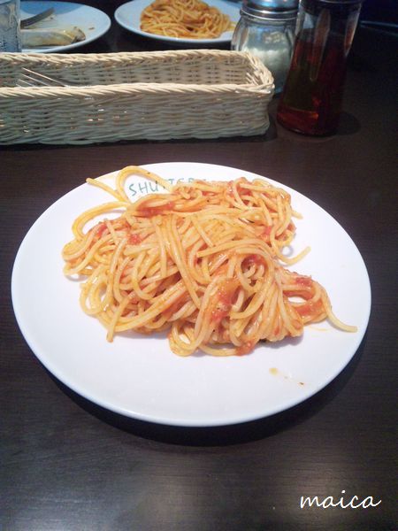 そして、これまた取り分け始めてしまってからあわてて撮った、今月のパスタ。今月はトマトとバジルとモッツアレラチーズのスパゲッティ^^