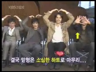 最後に「サランヘヨ~ポーズ」で決めようと言ったものの、みんなに裏切られ1人でポーズして恥ずかしかったジンモ氏。