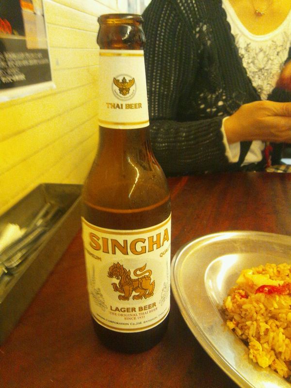 まずは、タイのSINGHAビールで乾杯!コップ出ません。瓶ごとラッパ飲みです。