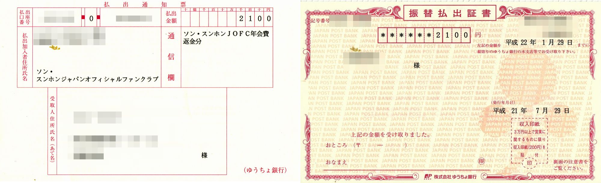 旧JOFCの会費の払い戻し。