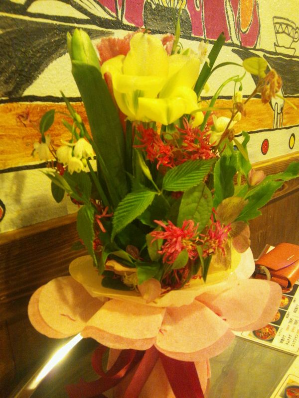 後ろの壁が賑やかでわかりにくいですが、こんなキレイなお花をいただきました。