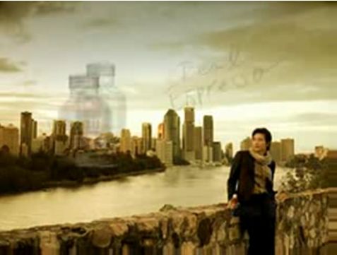 最後にウォンビン君が川の見える高台に立ってコーヒーを飲んでるんだけど・・・