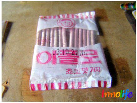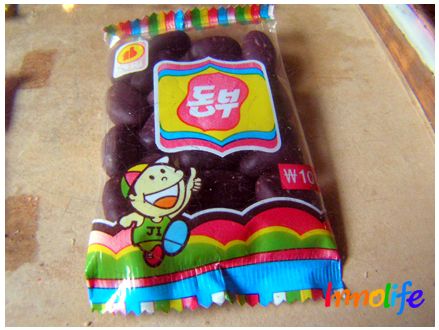 「ドンブ」は黒い色のお菓子で、若干チョコレートの香りがするのが特徴で、その当時は他のお菓子とは違って、唯一100ウォンだったと記憶している。