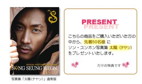 ソン・スンホン写真集「太陽(テヤン)」を差し上げます。
