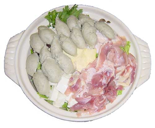 はじめに軍鶏肉を入れて沸騰しないように火加減に気をつけながら、野菜とそばがきを追加して火の通るのを待ちます