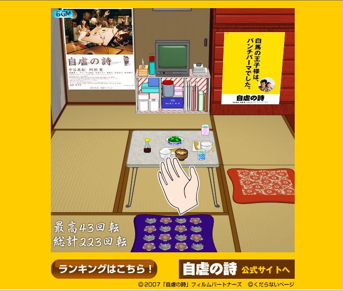 マウスを操作して、ちゃぶ台を天高く(?)ひっくり返す・・・というもの。