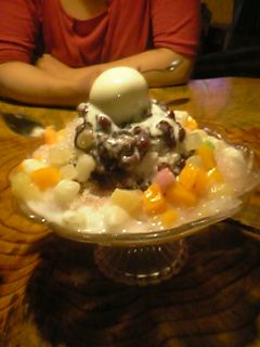 もともと溶けかかっていた氷が五味子茶ですっかり溶け、器からデロデロとあふれ出しました・・・(-_-;)