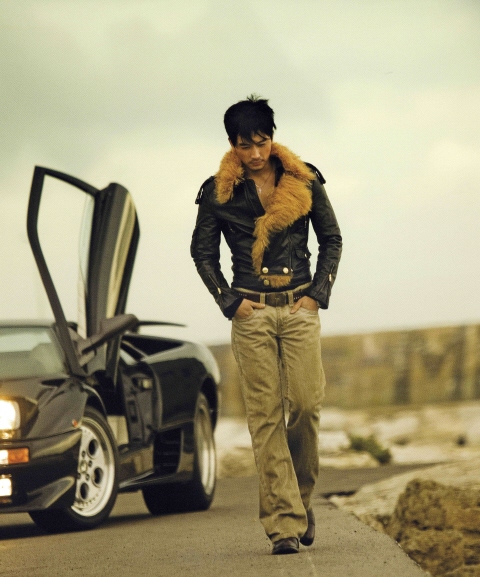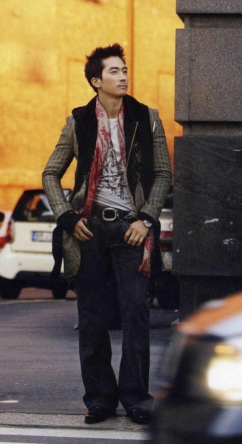 「普段はジーンズにTシャツなどの楽なスタイルが好き」というソン・スンホン。ジーンズはブーツカット・スタイルをよくはくことでも有名だ。