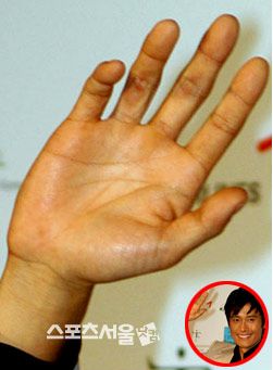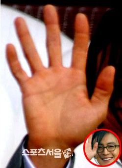 ◆ソン・スンホン : ソン・スンホンの手で一番特徴的な部分は小指だ.他の指に比べて (薬指との) 間隔が広い.小指が落ちていることはザンモリが良いという意味だ.生命線を含めた基本的な線たちが太くて鮮明だ..感情線は人差し指に向けて濃く上がる.感情が豊かで感情延期にも上手い.ただ人福船が不十分に発達されて幅広い対人関係が要求される.