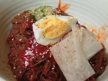 お昼にはビビン冷麺をいただきました。