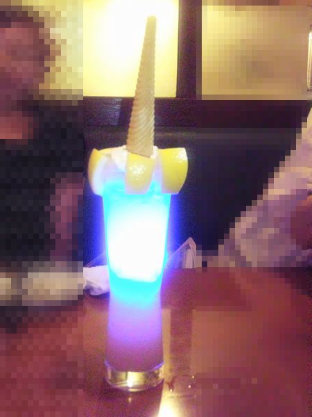 そしてグラスの中には青く光る物体が!