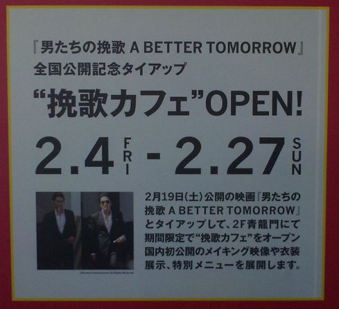 今日は本日からスタートした『男たちの挽歌』タイアップ企画の挽歌カフェへ行ってきました。