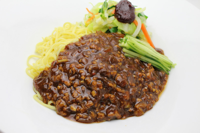 注文したチャジャンミョン↓を食べる手がピタリと止まる私たち3人・・・